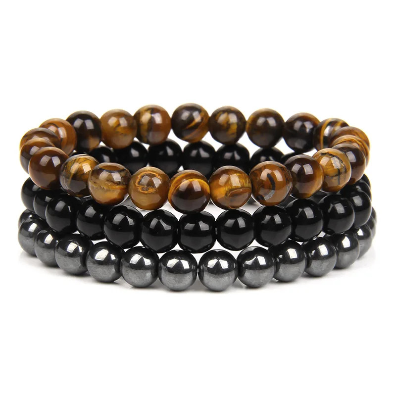 8mm natural stone bracelet set 3Pcs/set Rohan stone rose pink quartz amethyst hematite bracelet female male jewelry