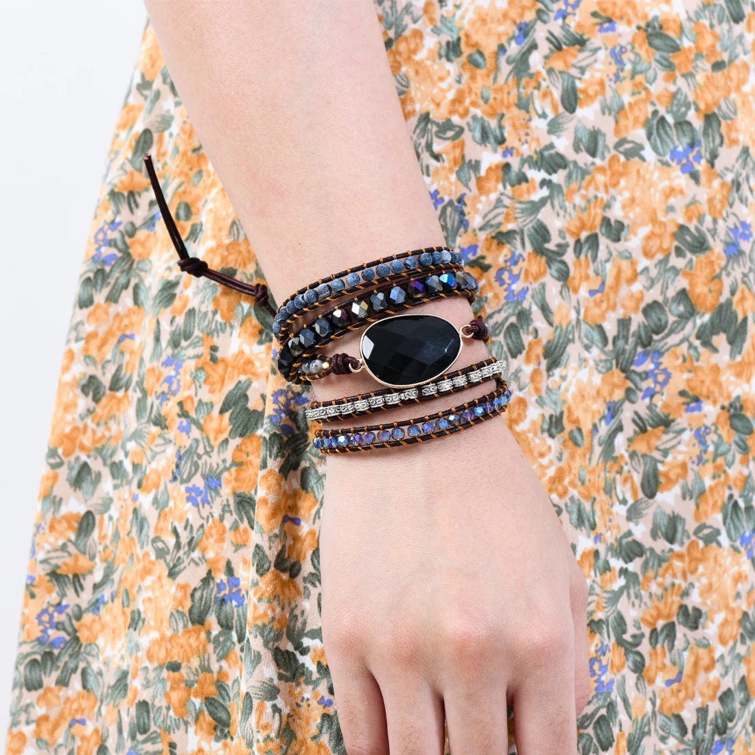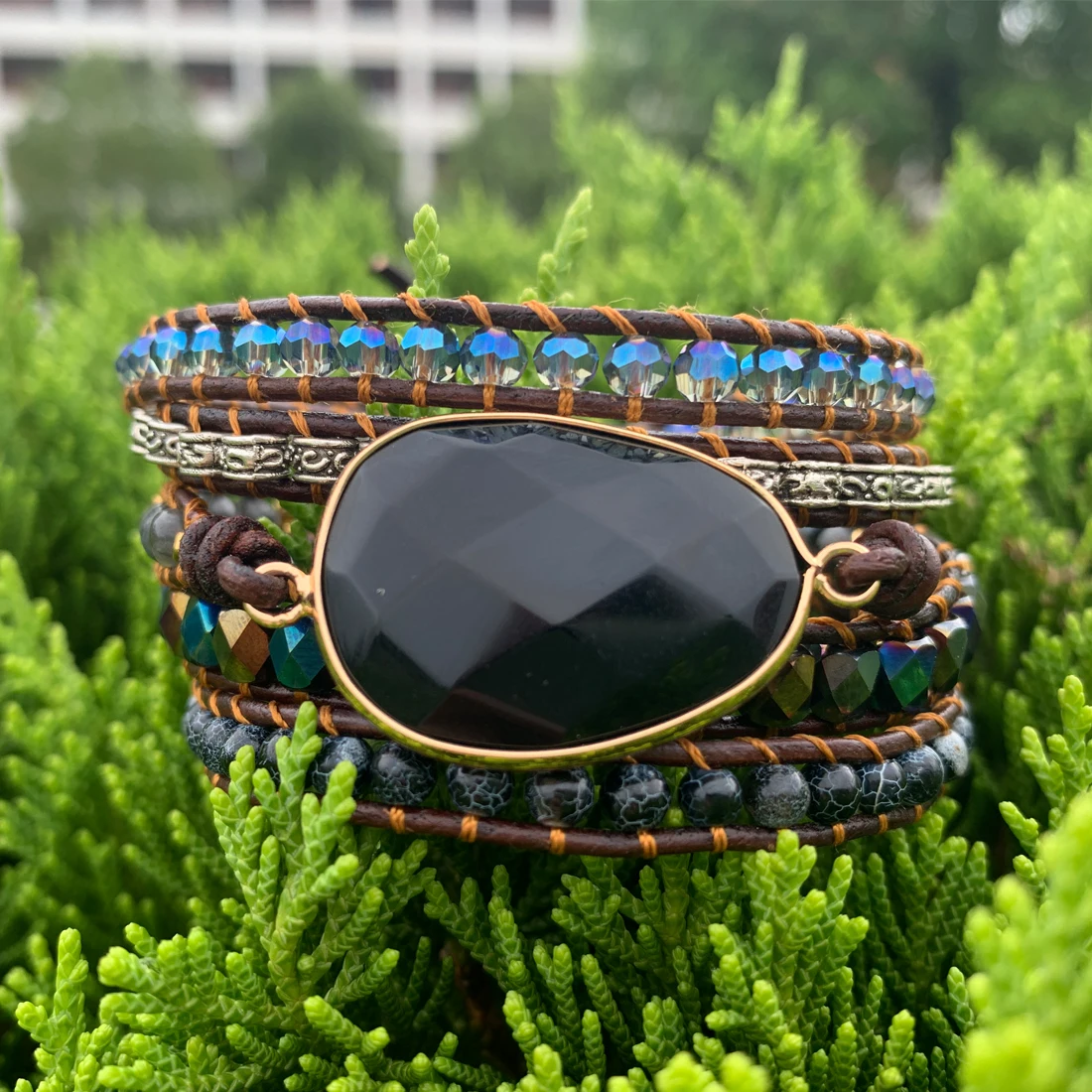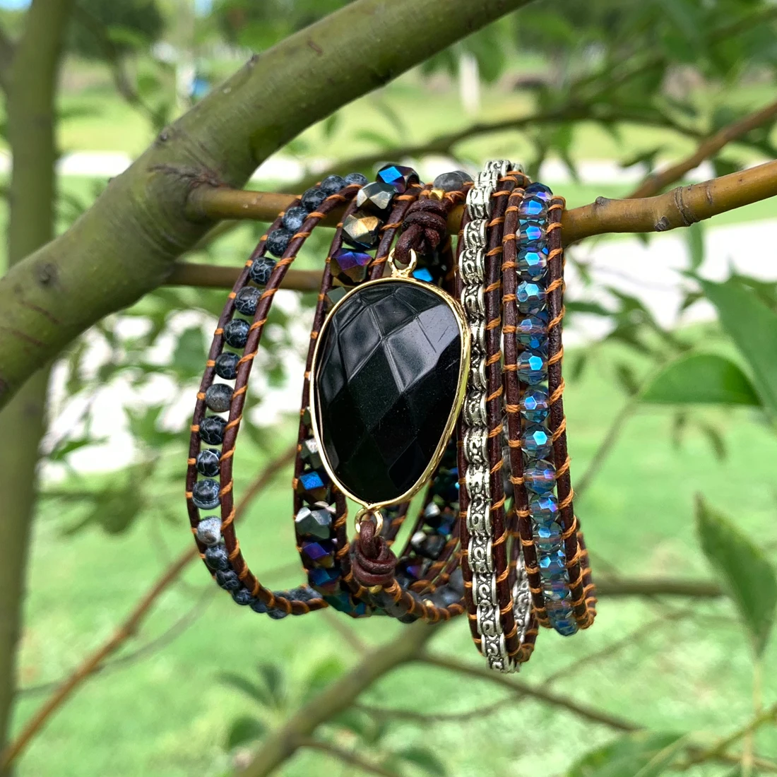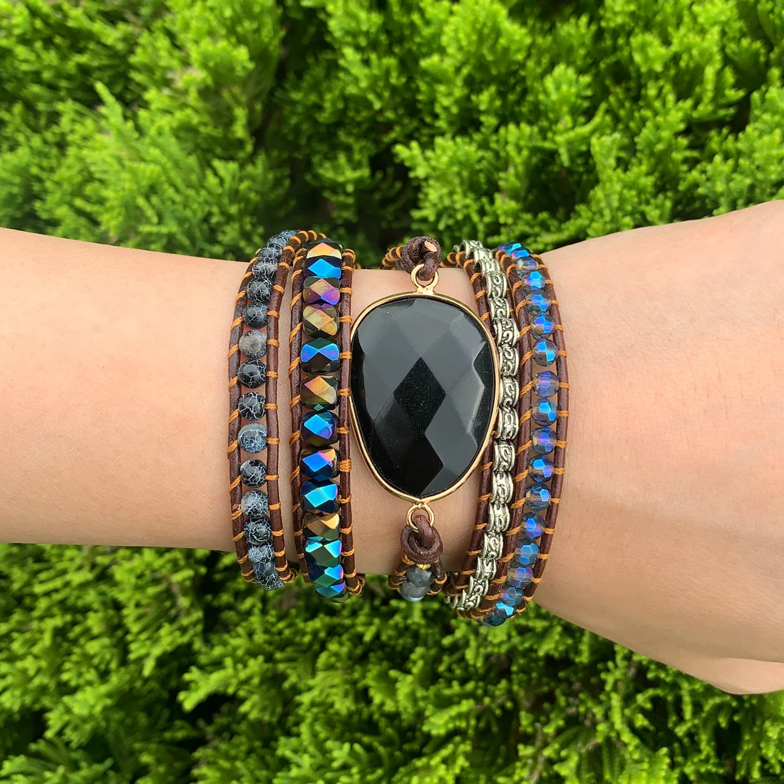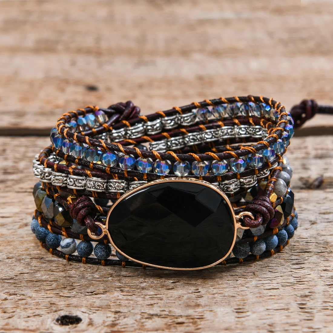 Latest 5X Leather Wrap Beaded Bracelet | Onyx stone