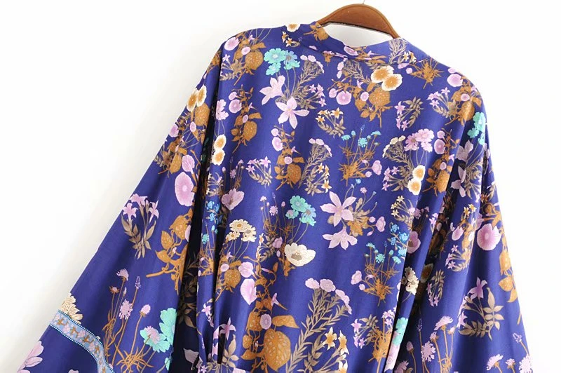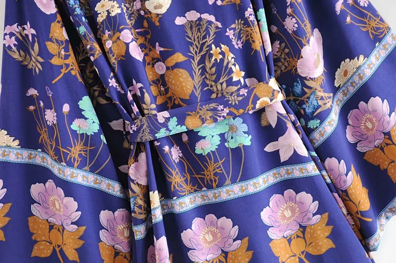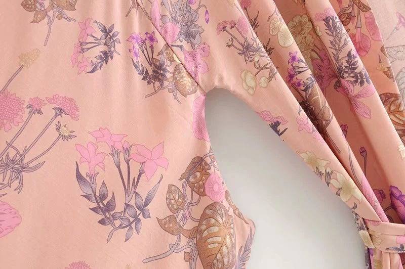 Happie Queens Women Floral Print Sashes Bat Sleeve