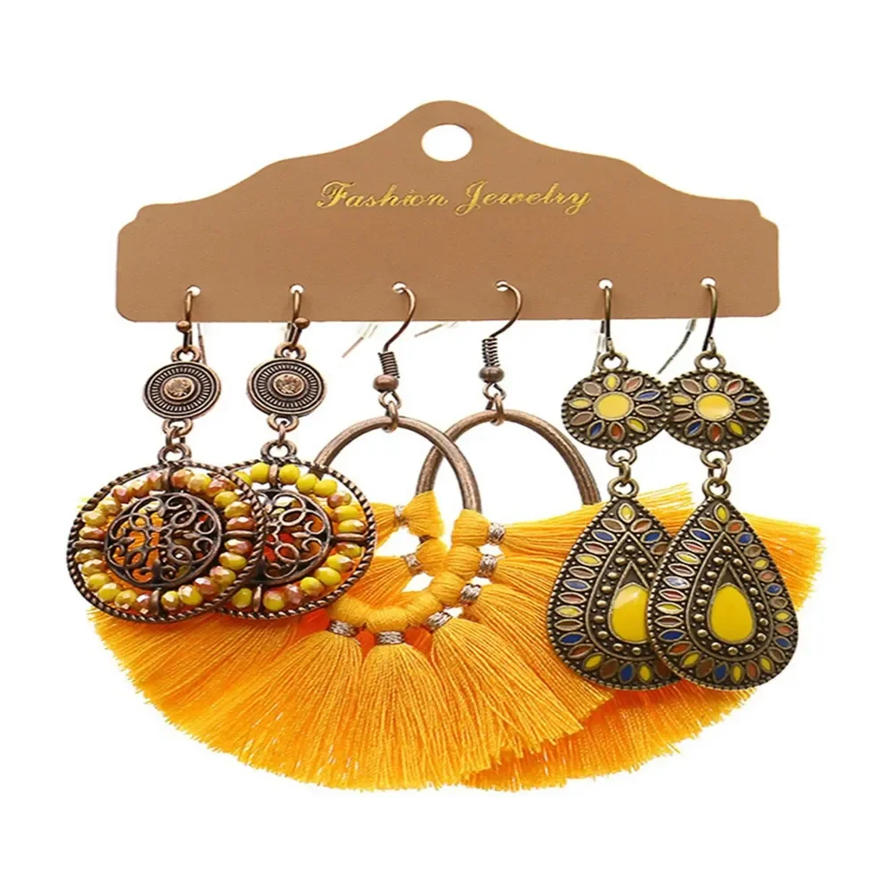 Hippie Bohemian Style Women's Flower Tassel Geometric Women's Earring Sets,