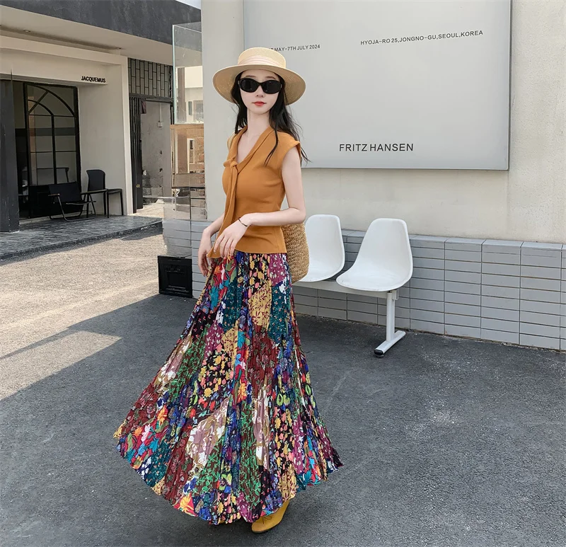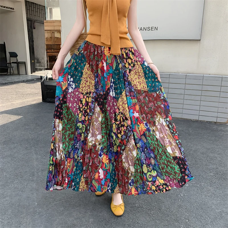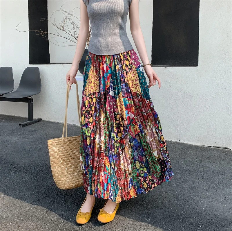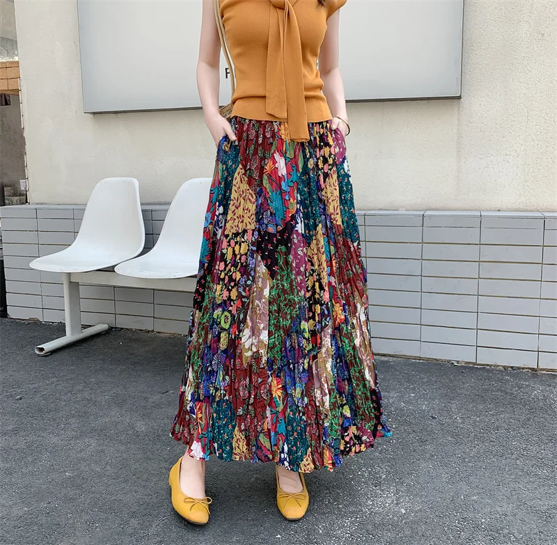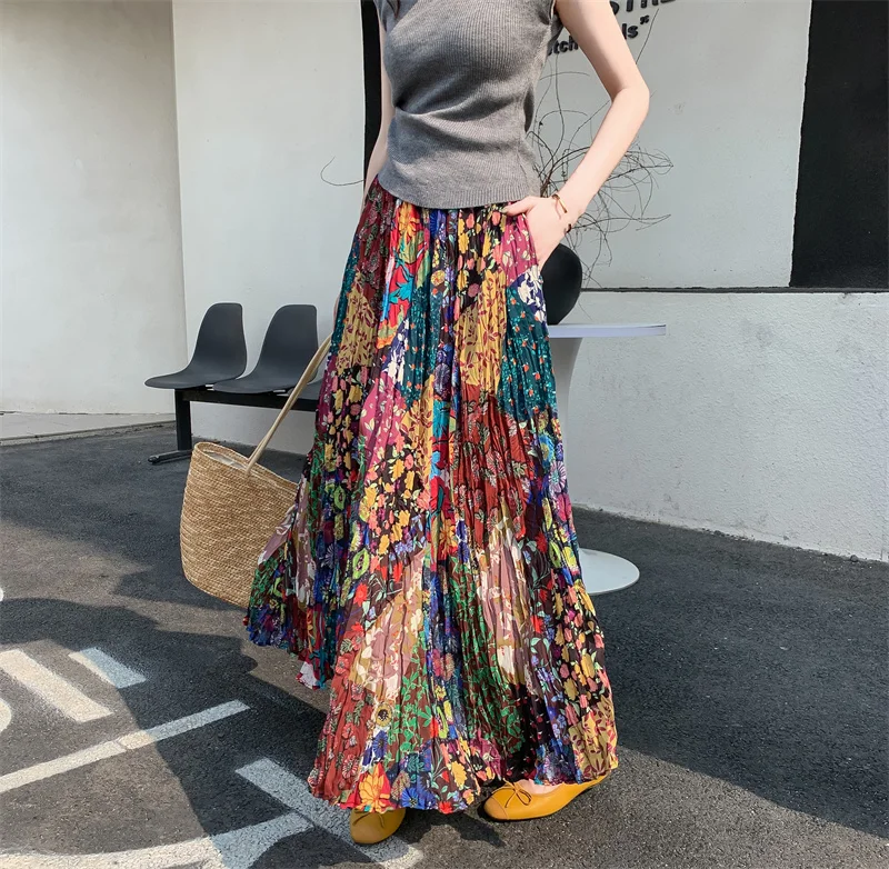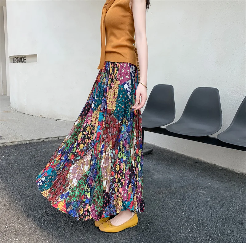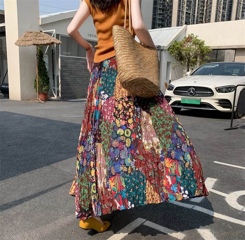 Hippie Colorful Bohemian Print Maxi Skirt