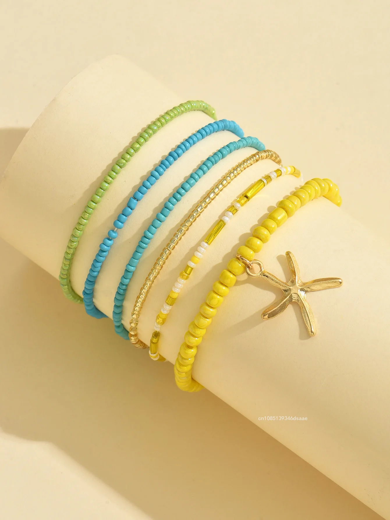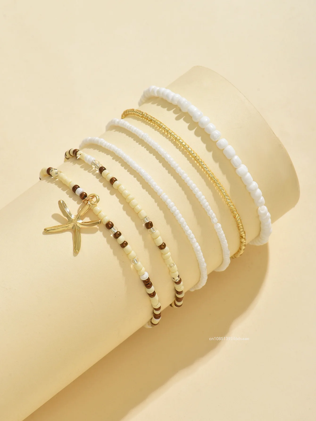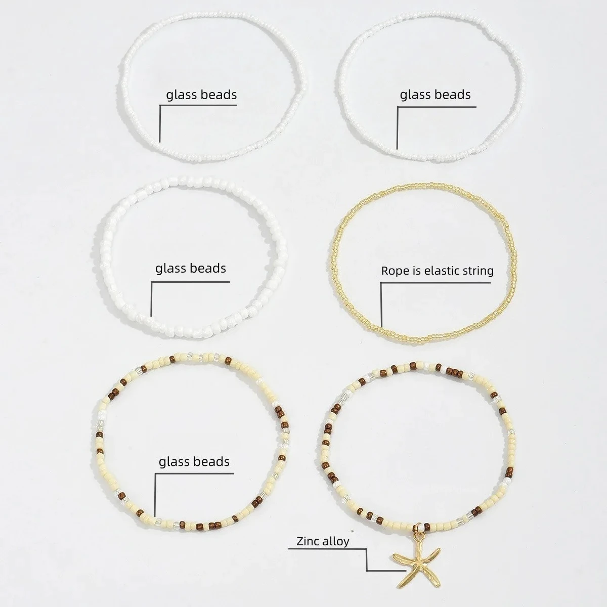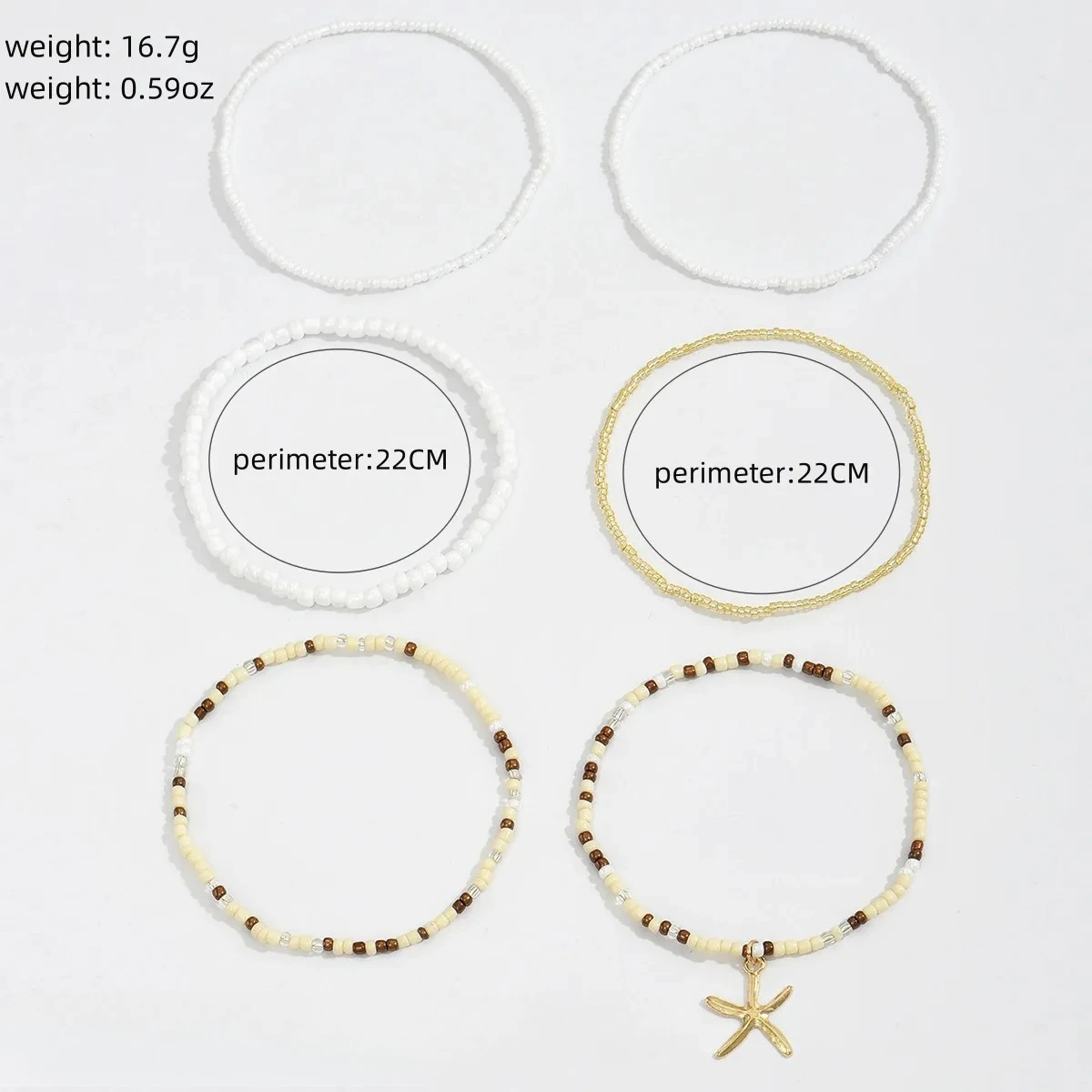 Hippie Multilayer Bohemia Rice Bead Anklet Set for Women