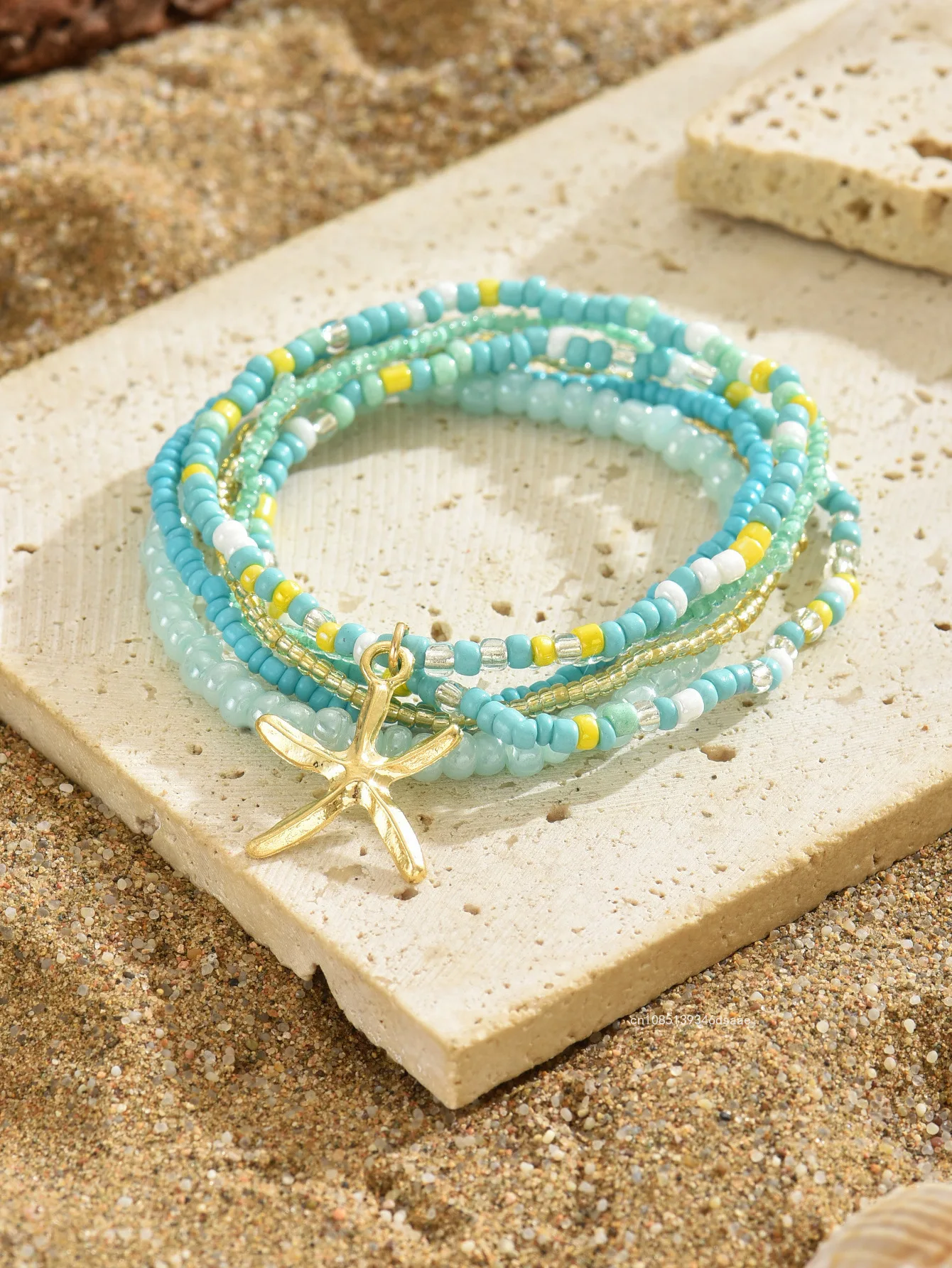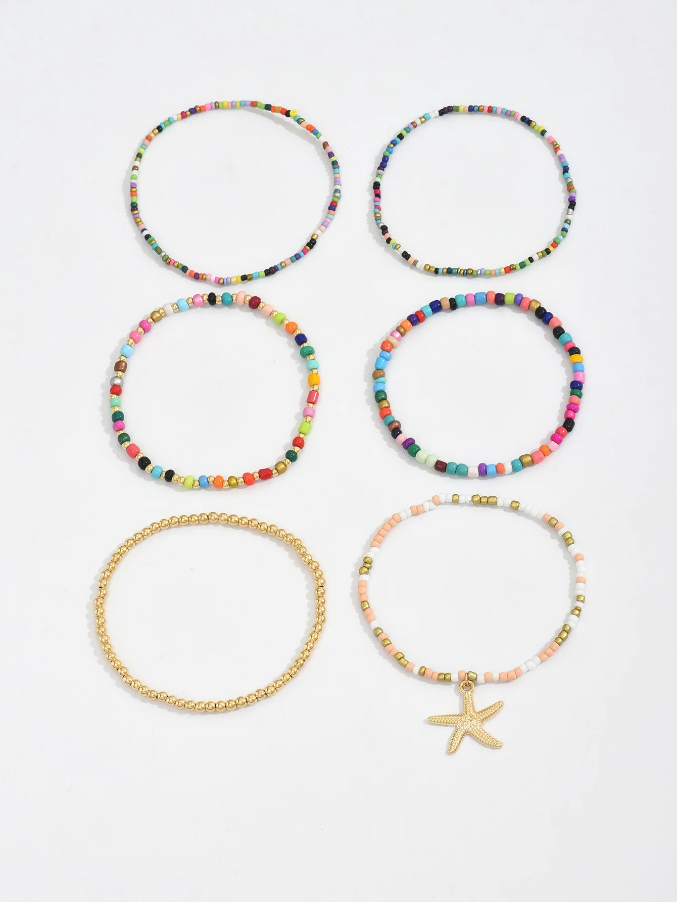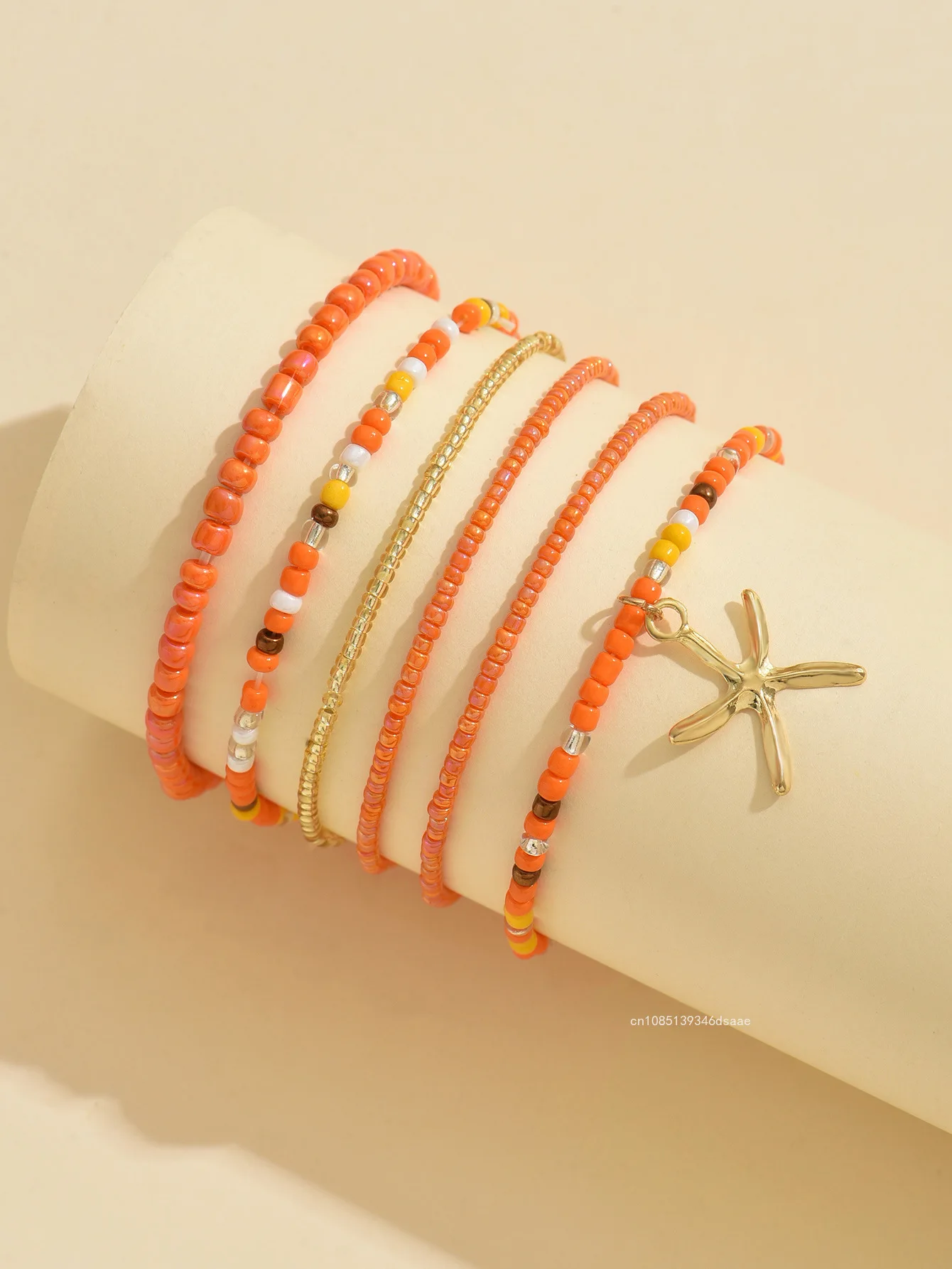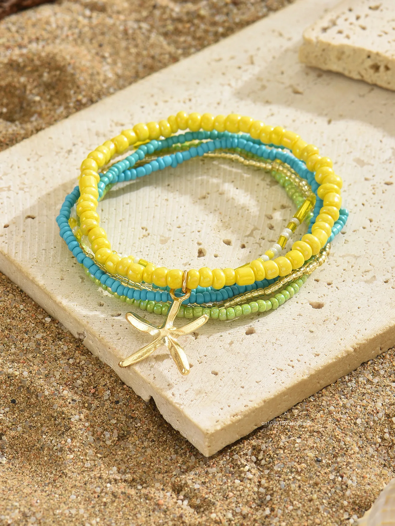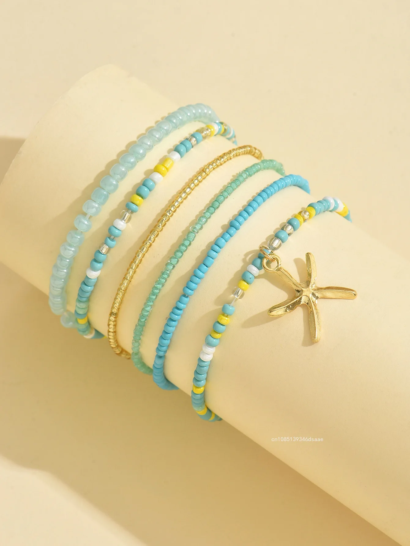 Hippie Multilayer Bohemia Rice Bead Anklet Set for Women