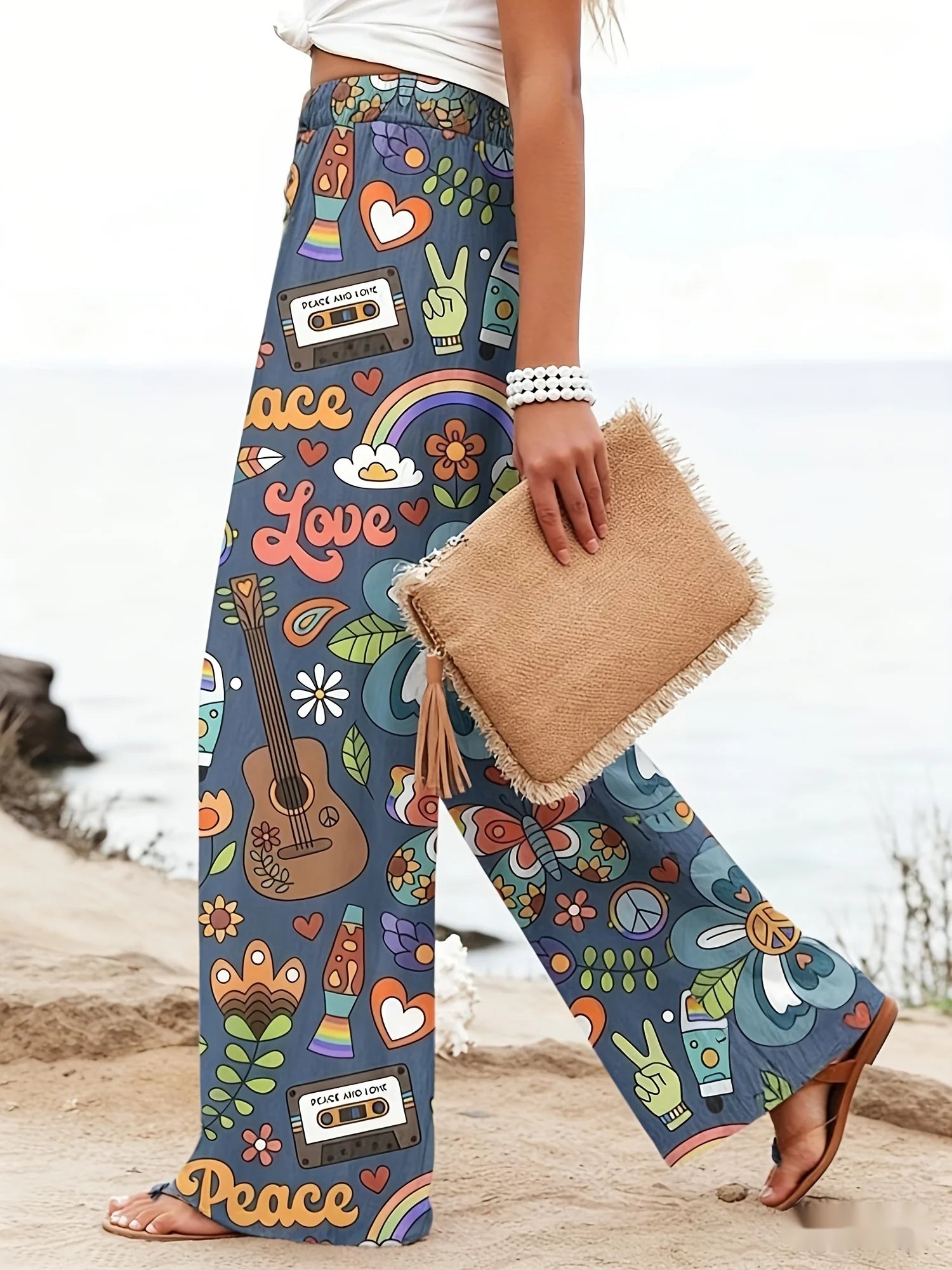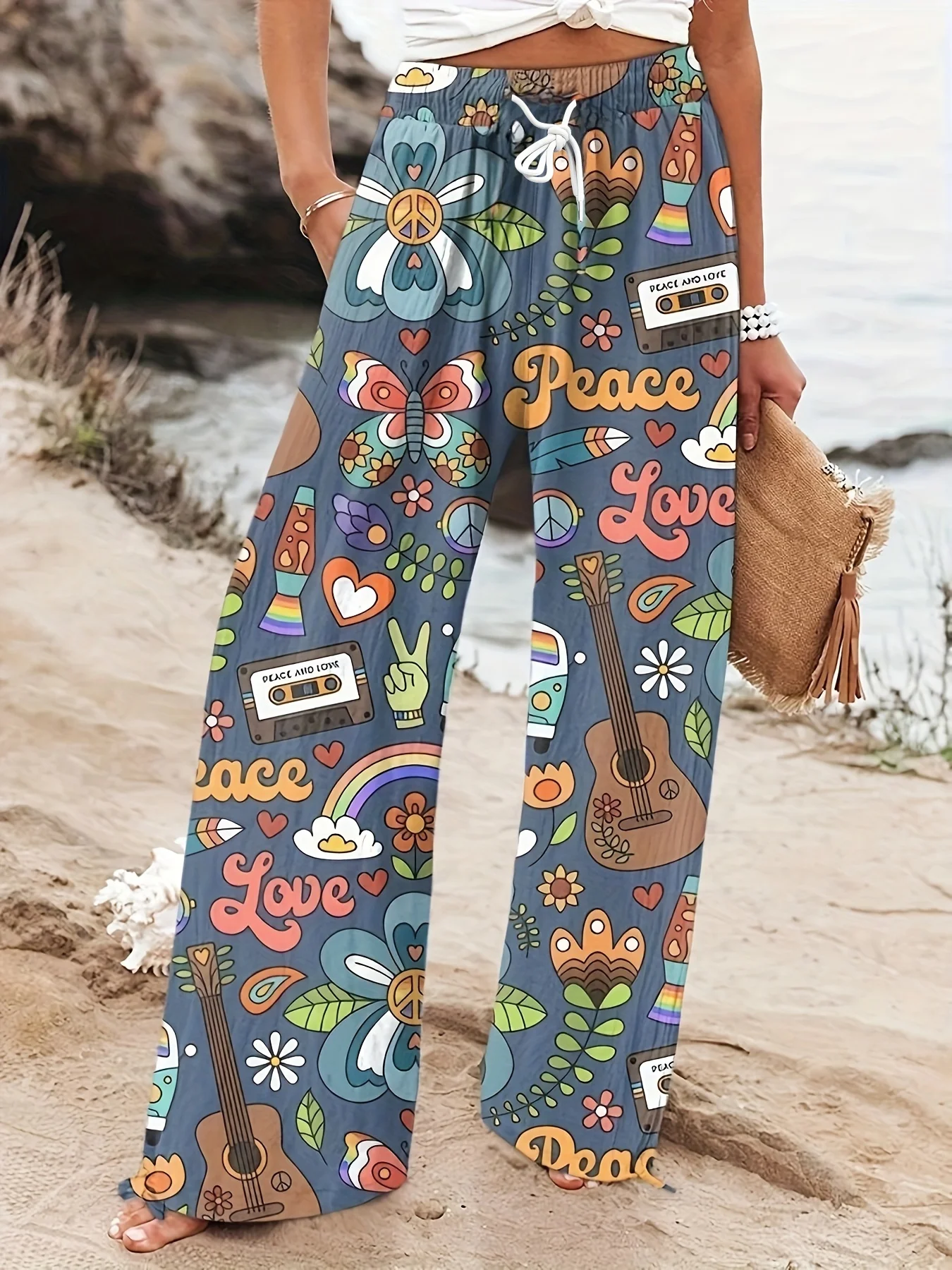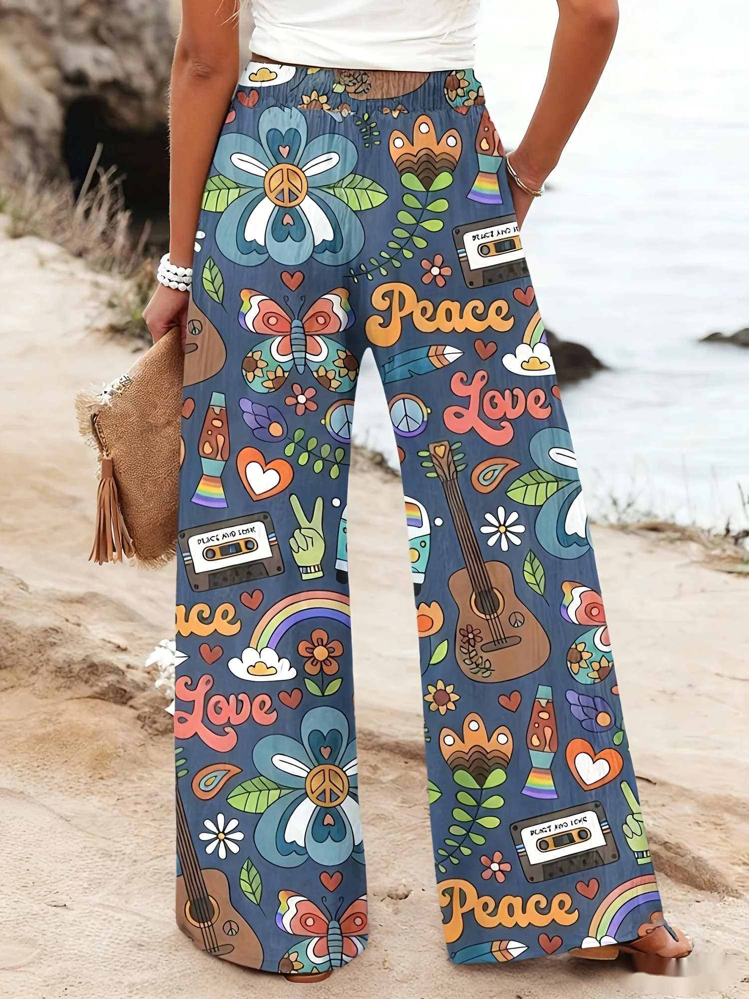 Hippie Peace & Love Graffiti Wide Leg Pants Women's