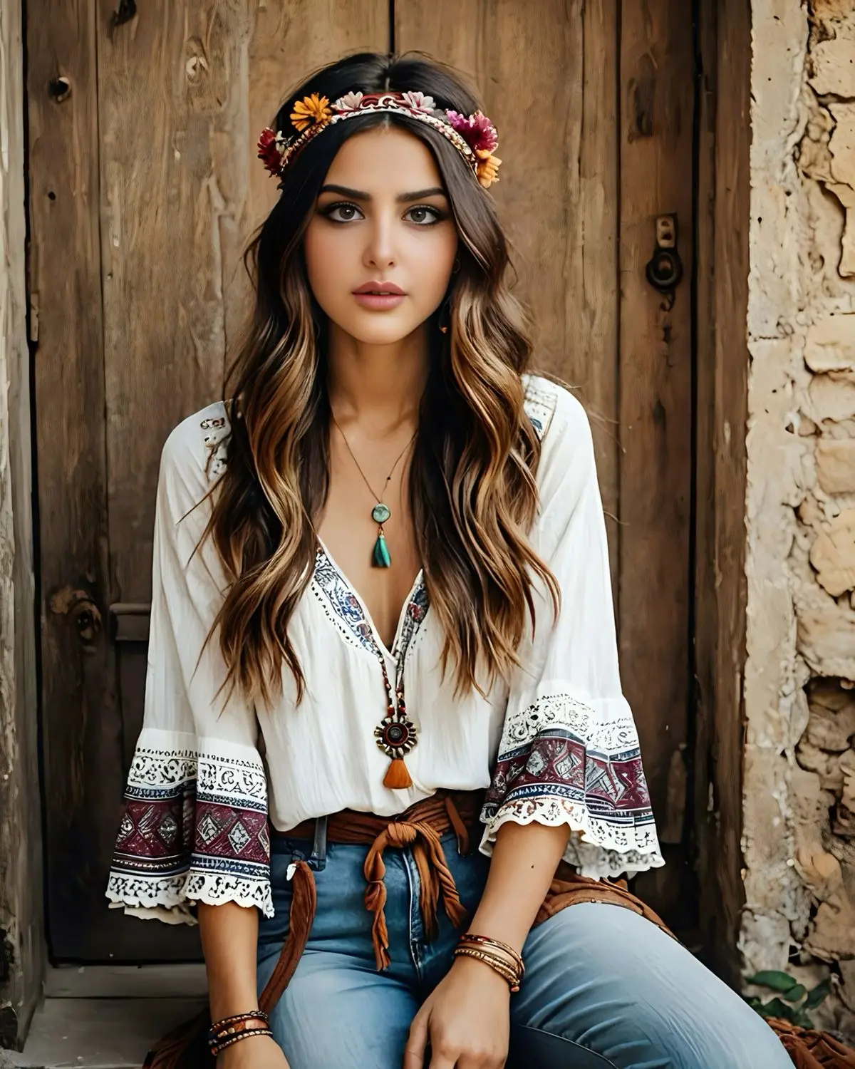 Hippie Sexy Lace Patchwork Sleeves Women's Blouse