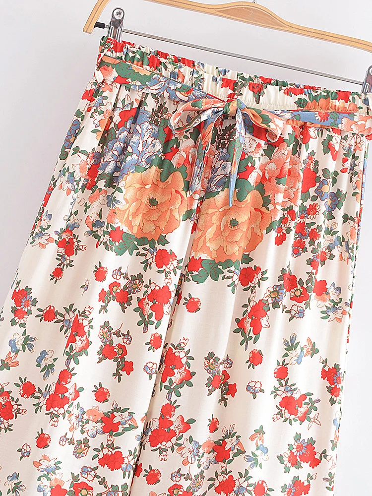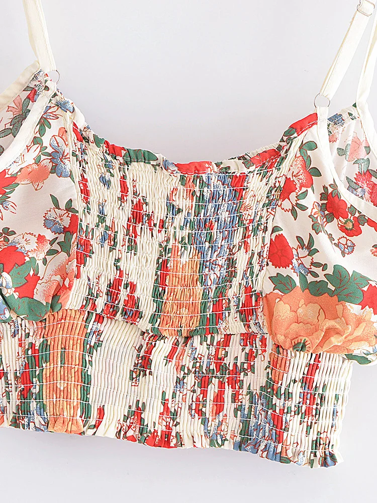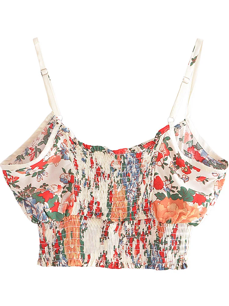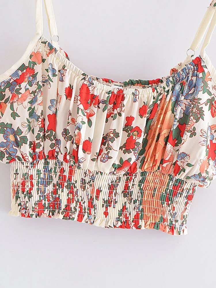 Hippie Vintage Chic Women Multi Floral Print Two Piece Suits Strap Sleeveless Tops Boho Sets