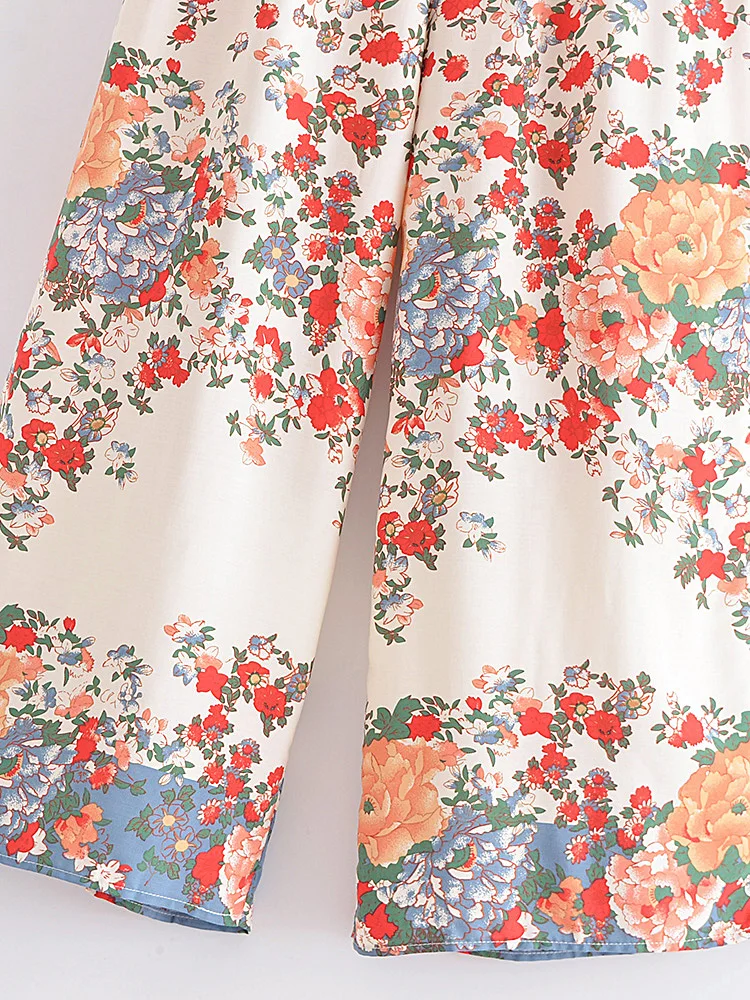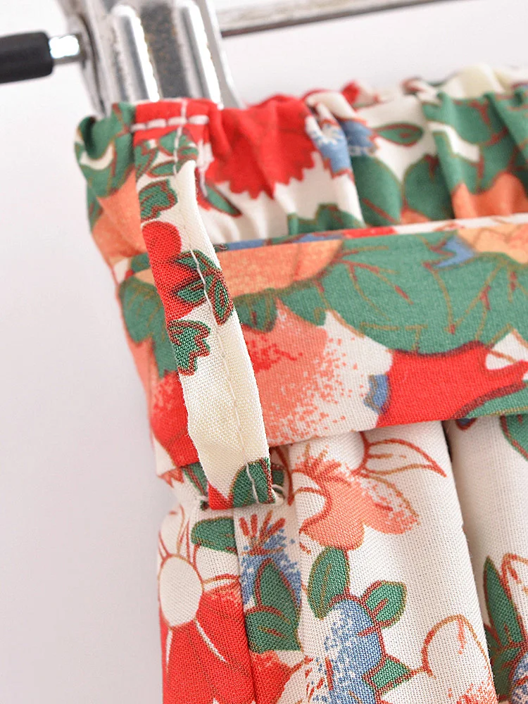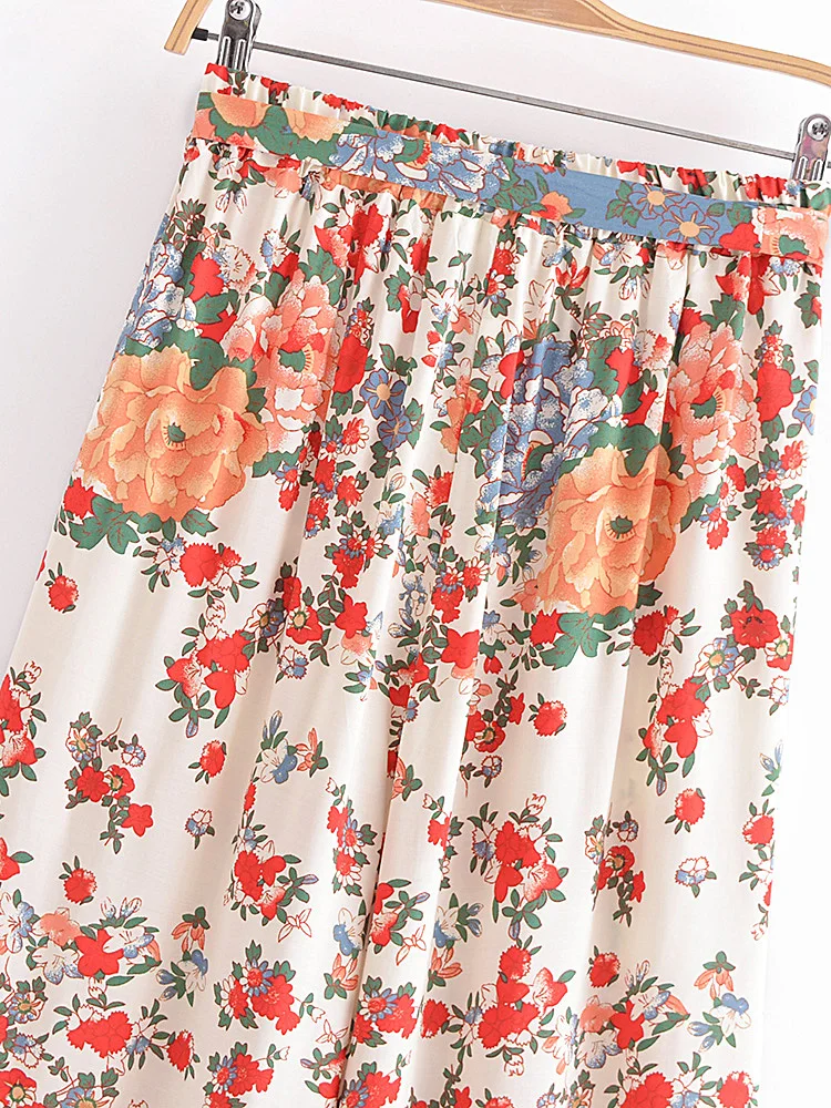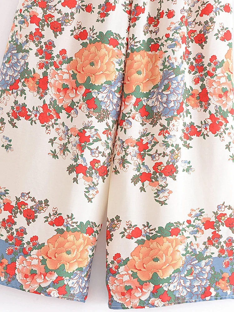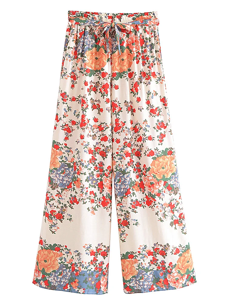 Hippie Vintage Chic Women Multi Floral Print Two Piece Suits Strap Sleeveless Tops Boho Sets