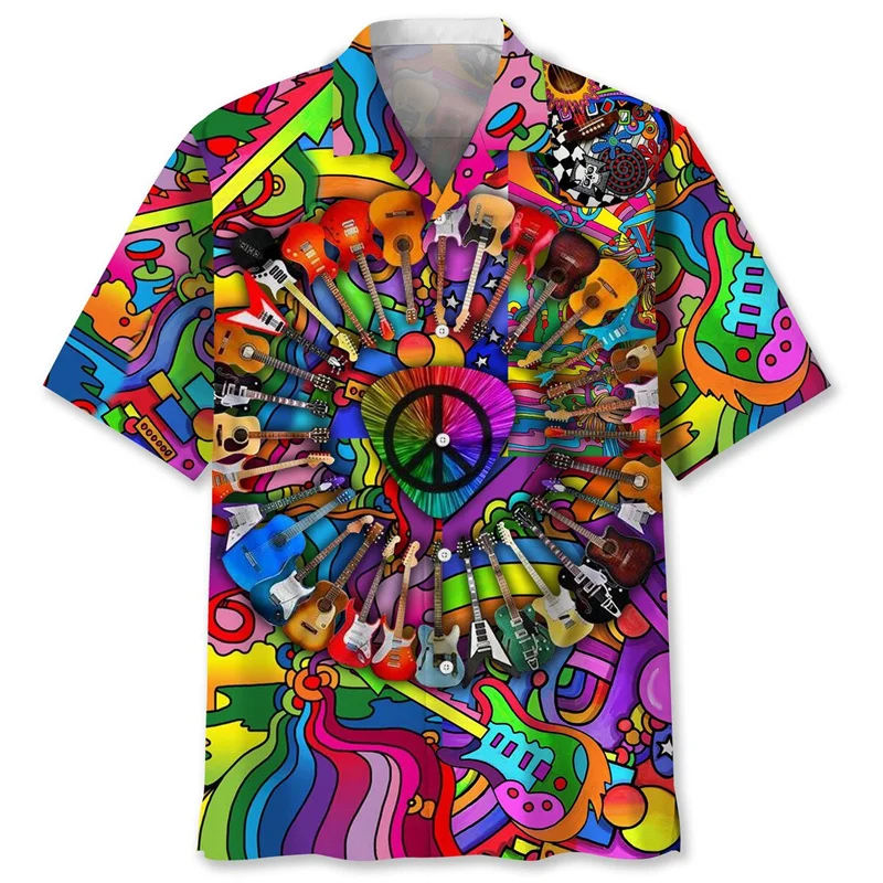 Hippie Vintage Colorful Peace Pattern Hawaiian Shirt For Men