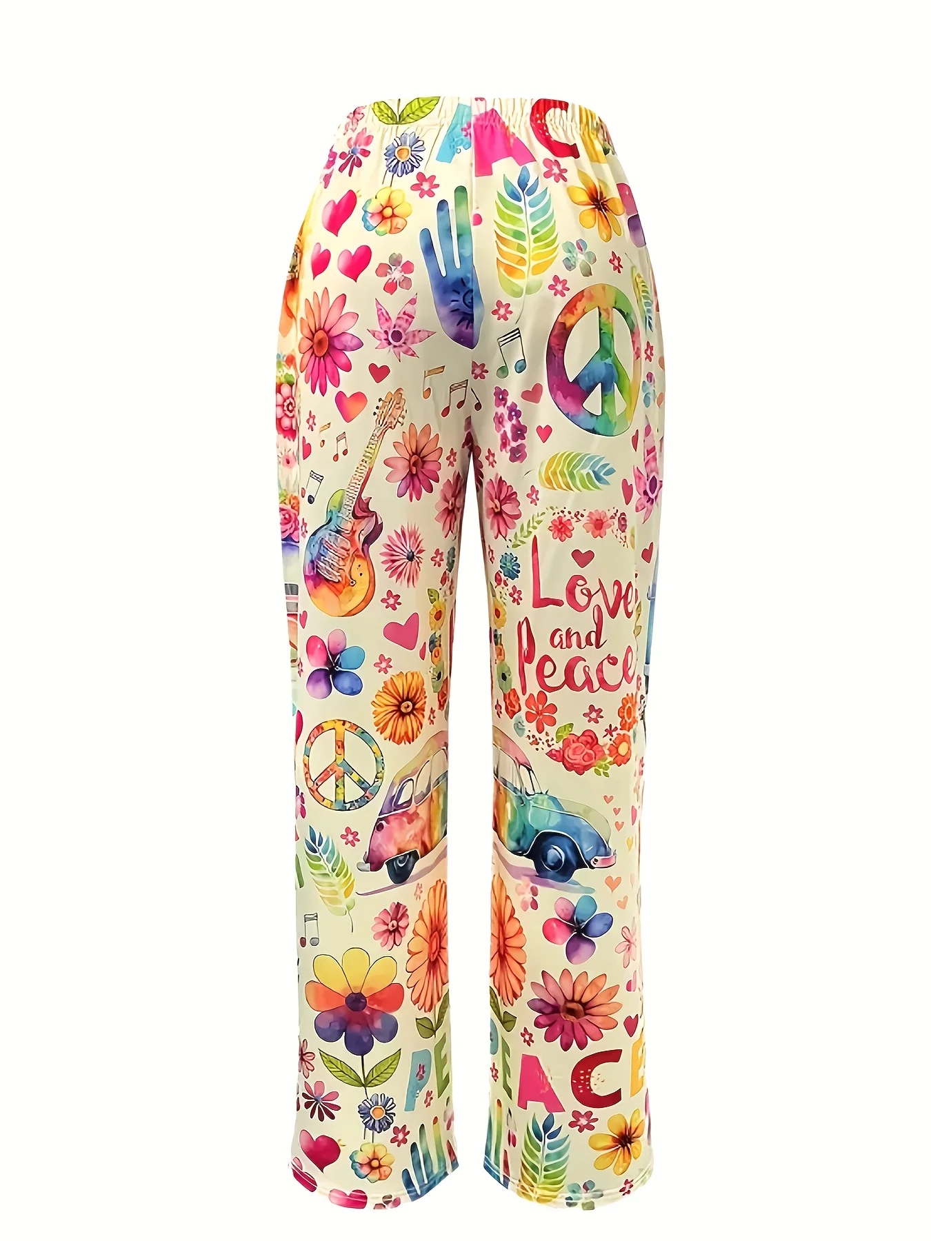 Hippie Watercolor Peace Sign Wide Leg Pants for Women