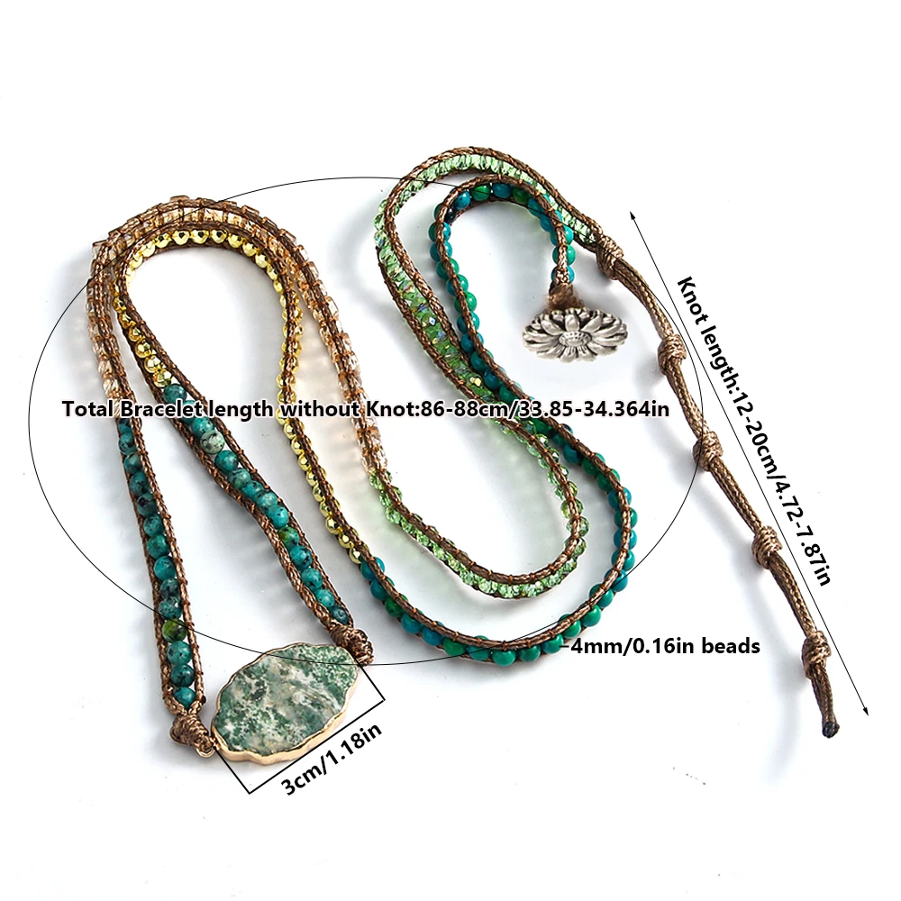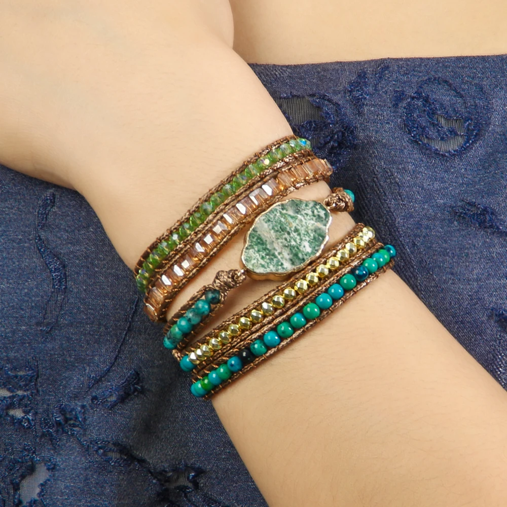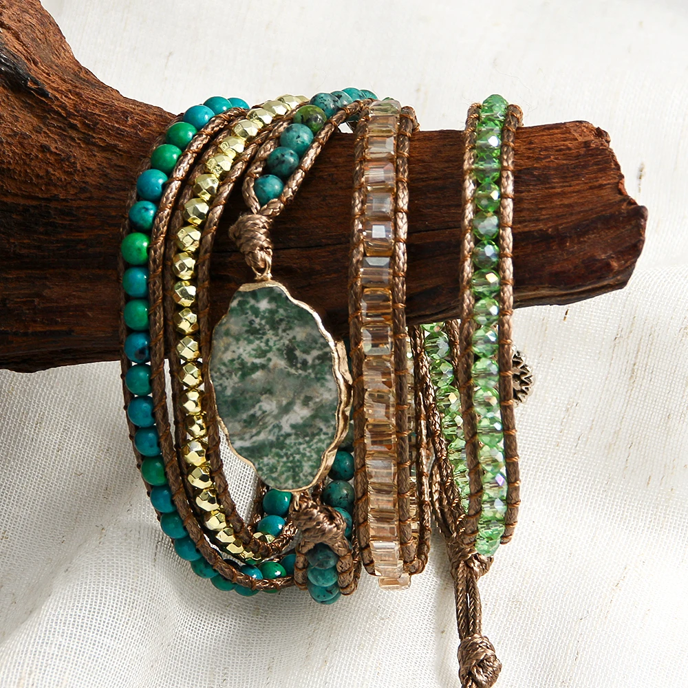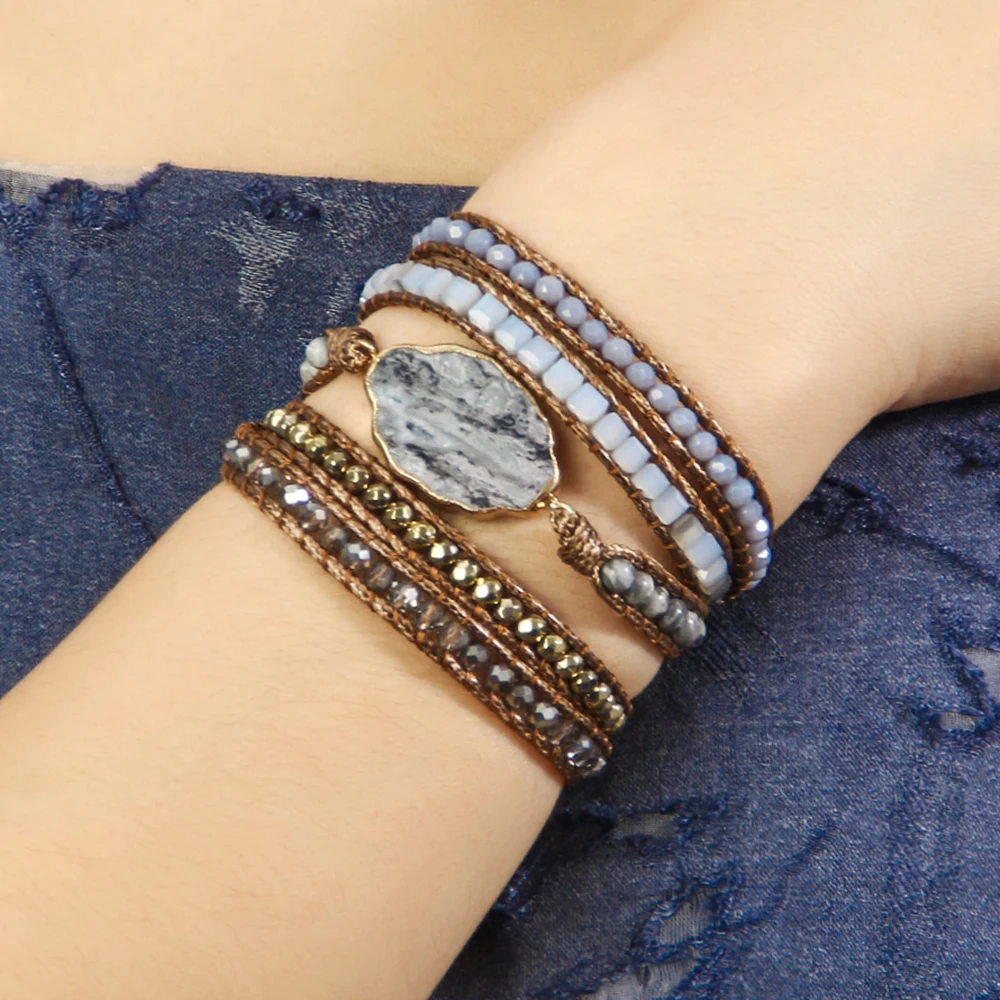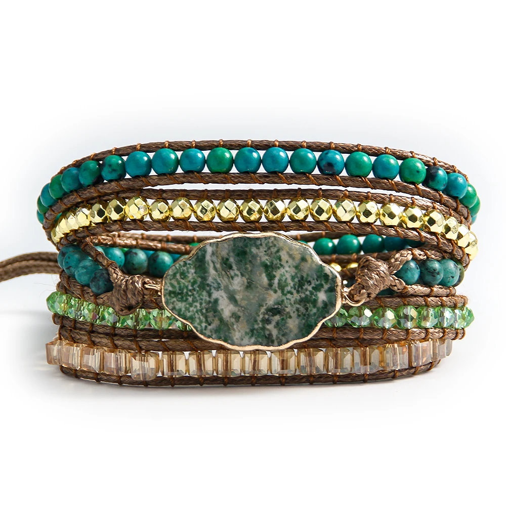 Hippie Wholesale Bohemian Ethnic Style 5 Strands Natural Stone Crystal Glass Handmade Wrap Bracelet
