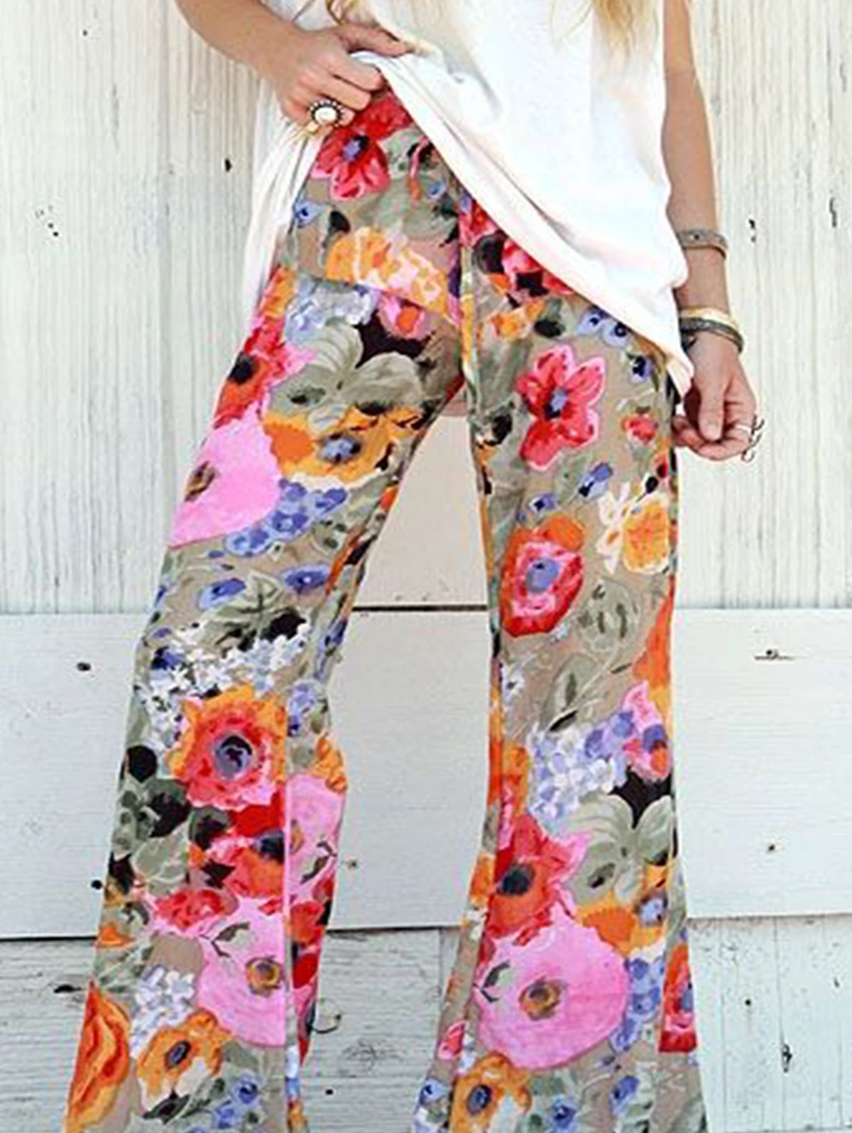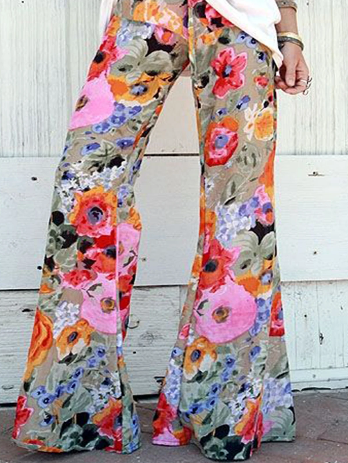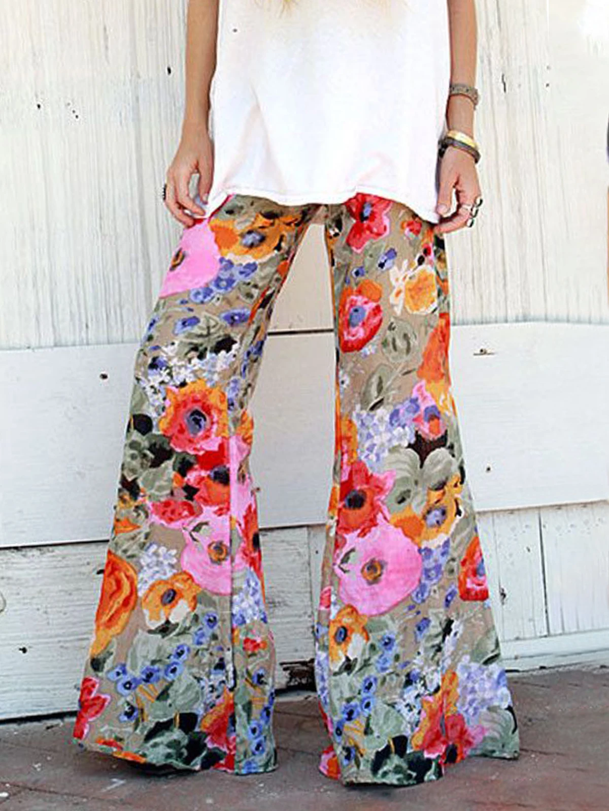Hippie Women Holiday Long Pants Fashion Wide Leg Trouser Floral Printed Pants
