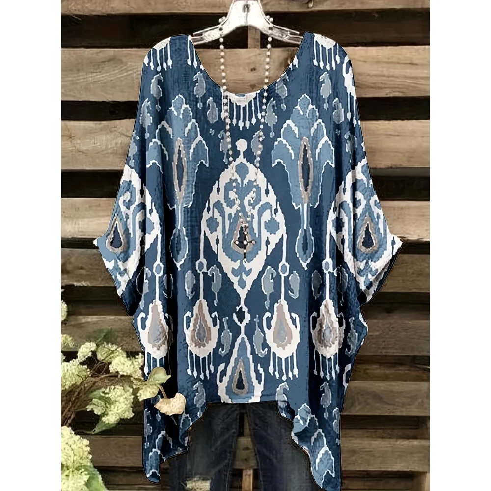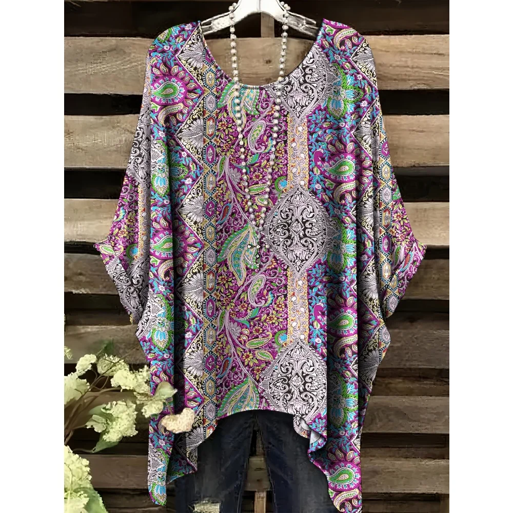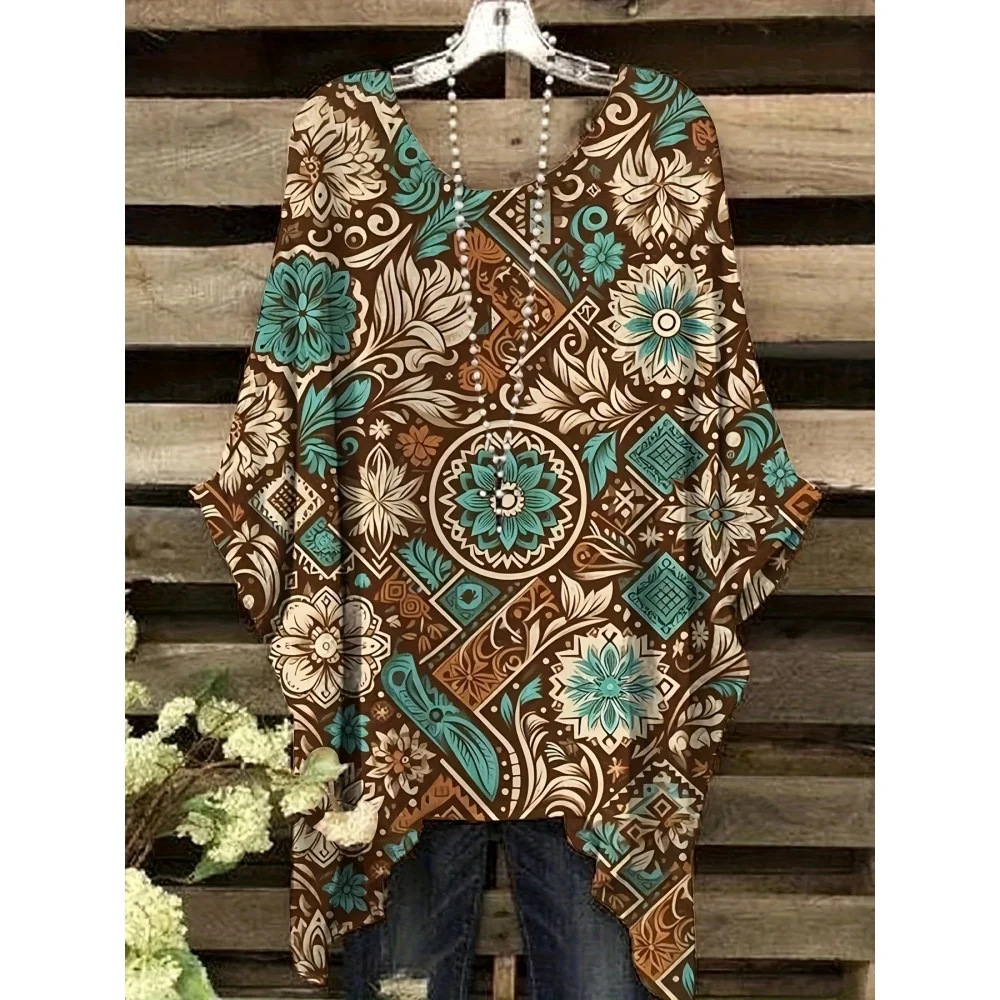 Hippie Women T-Shirts Bohemian Vacation Simple Pattern Print Tops