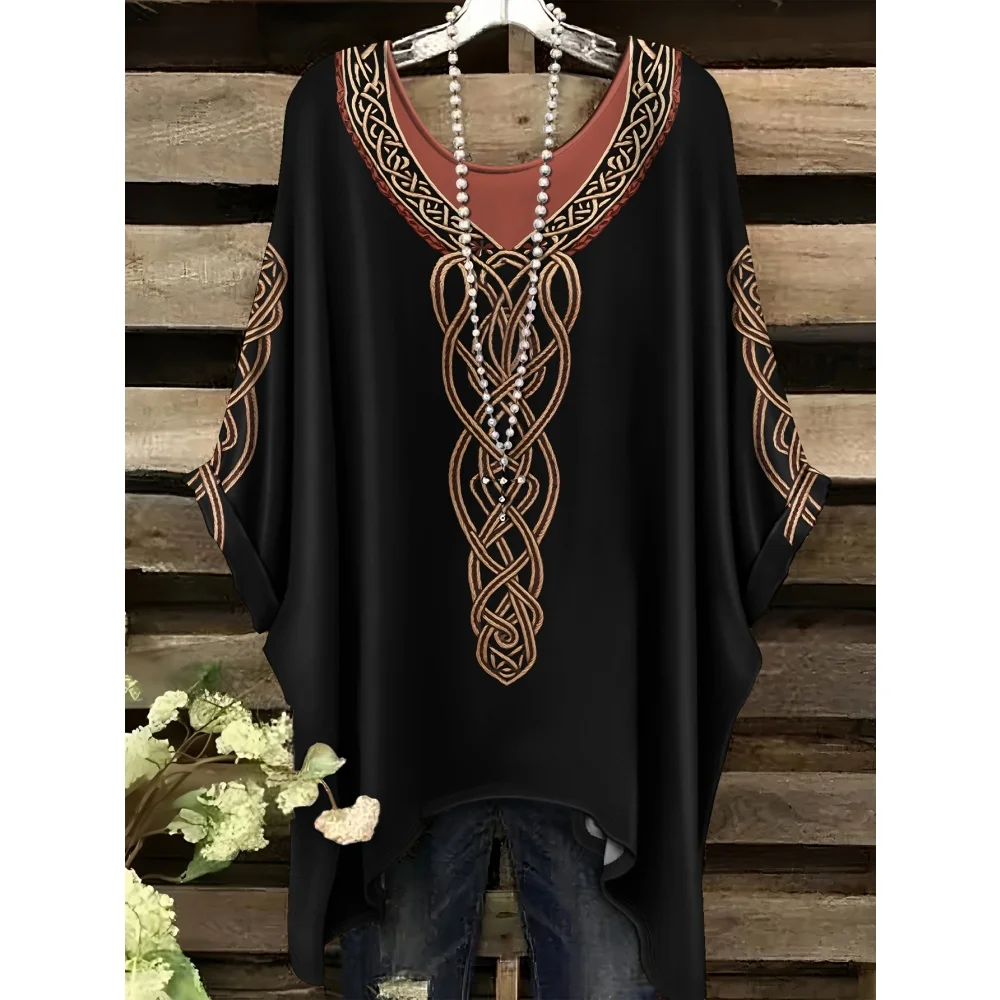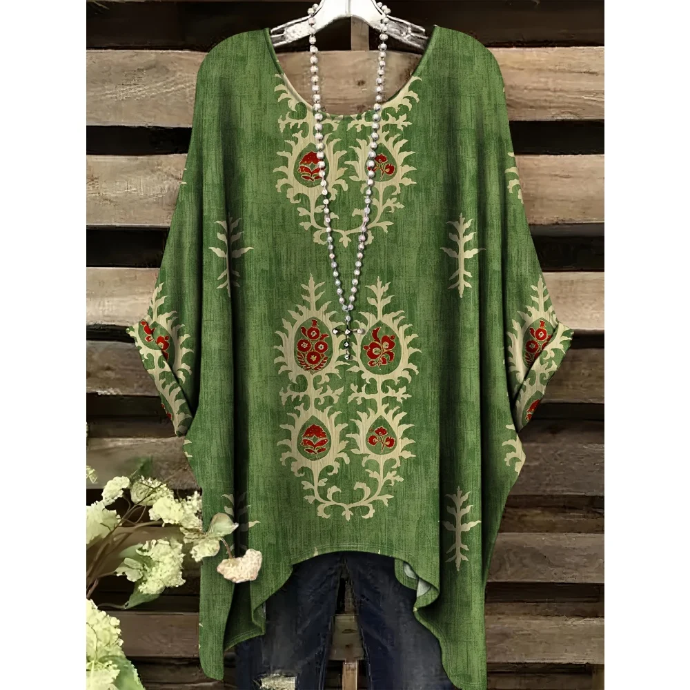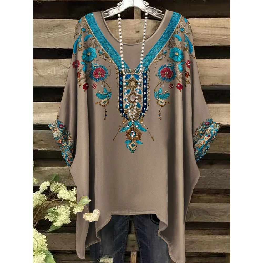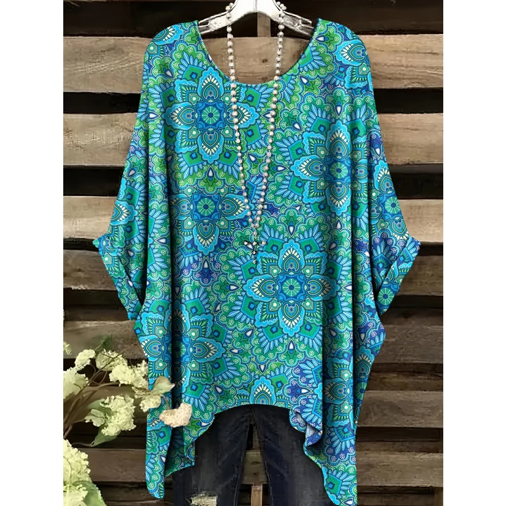 Hippie Women T-Shirts Bohemian Vacation Simple Pattern Print Tops
