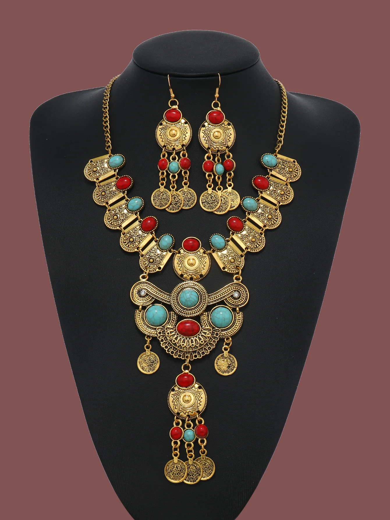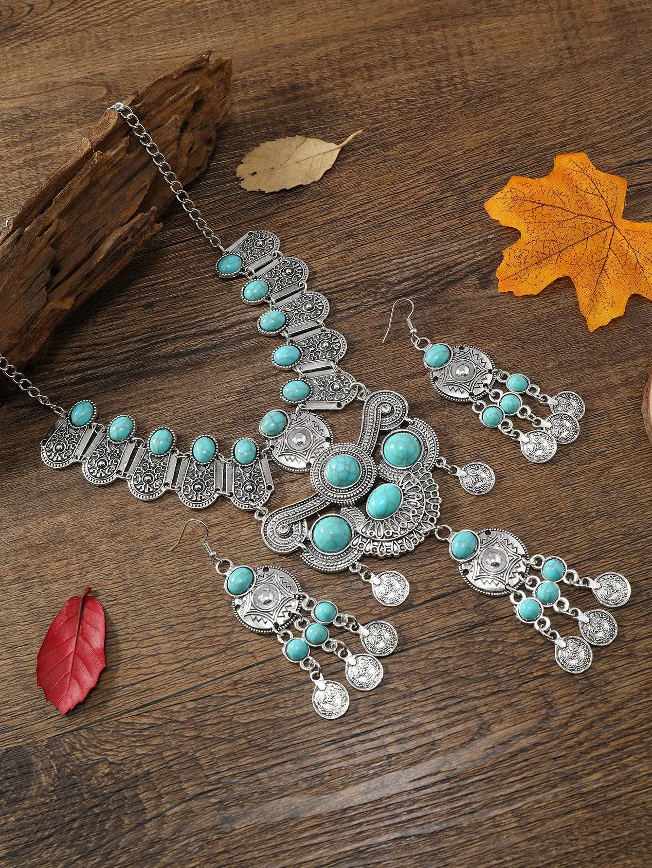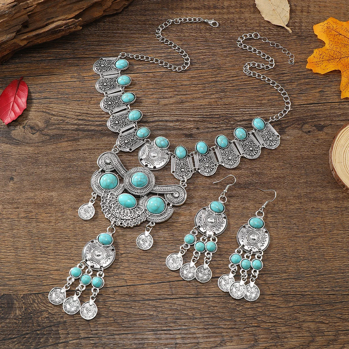 Hippie Vintage Choker Statement Necklace Earrings Set for Women