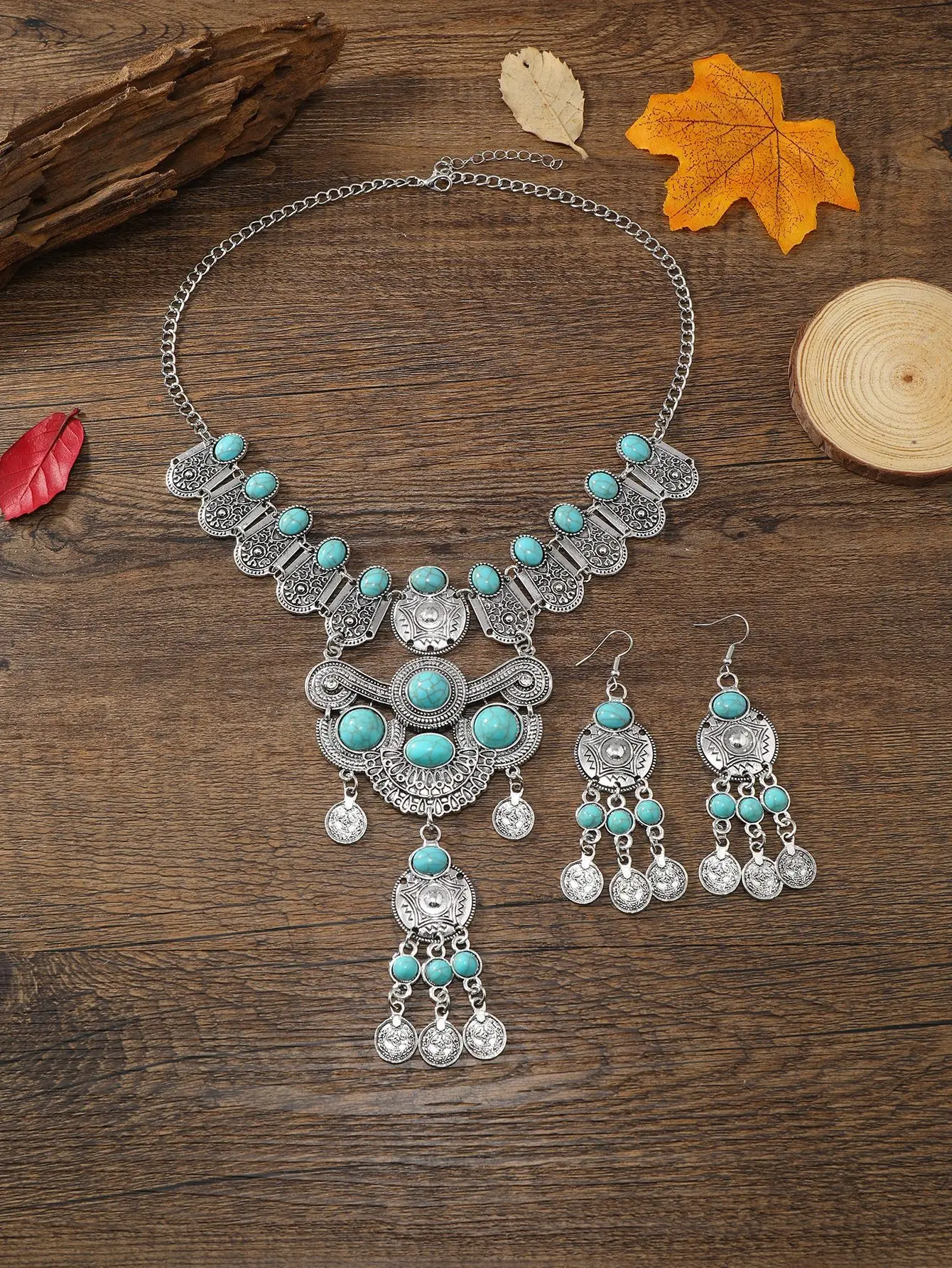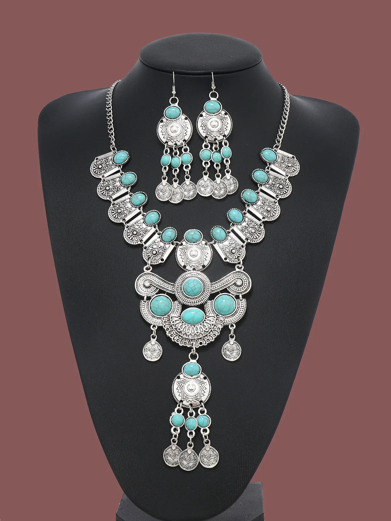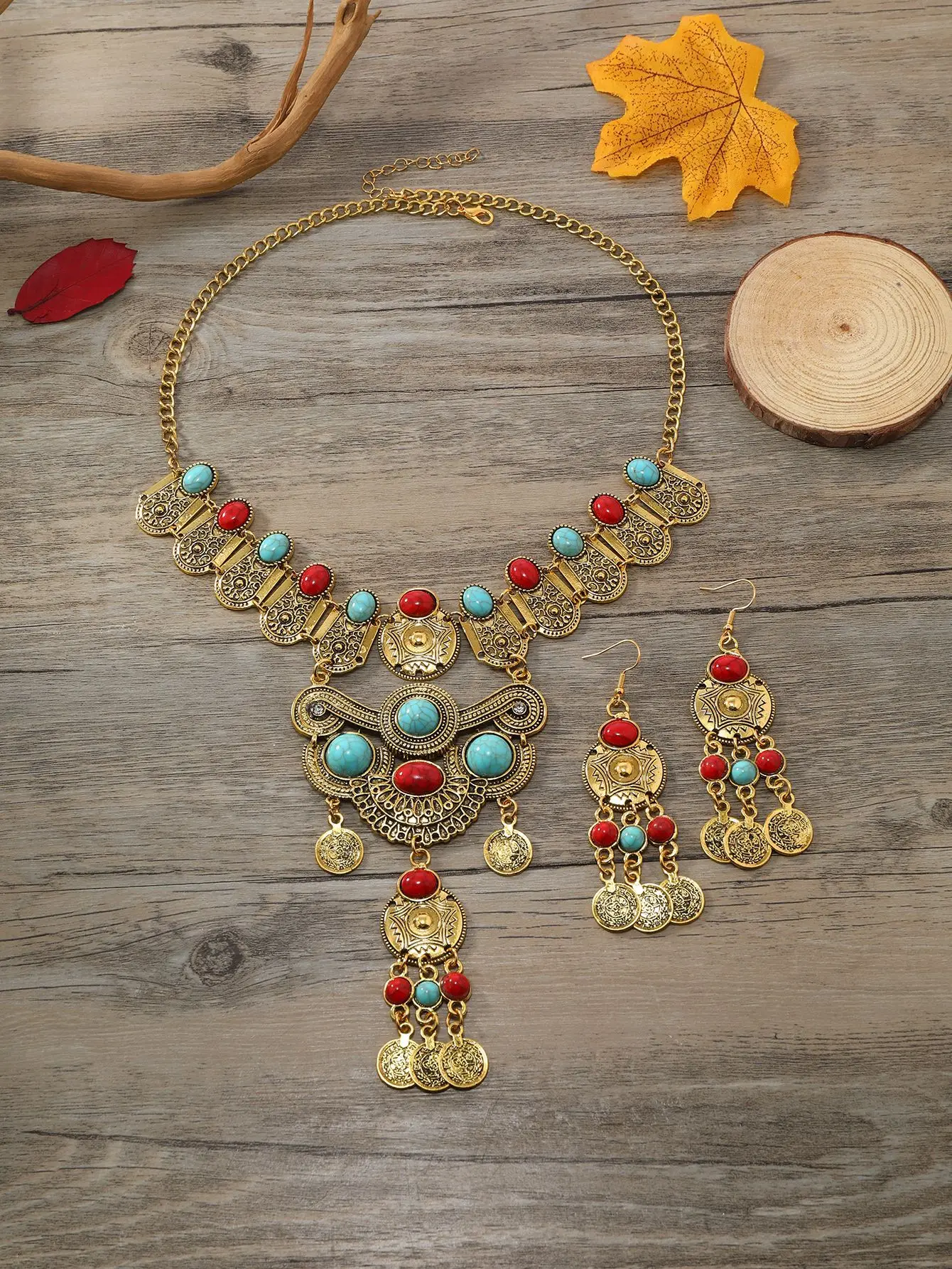 Hippie Vintage Choker Statement Necklace Earrings Set for Women