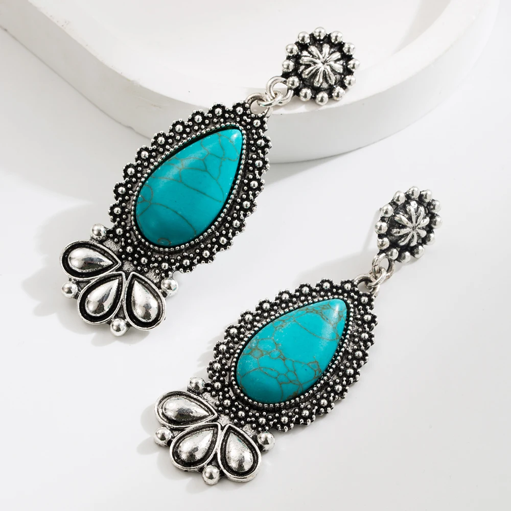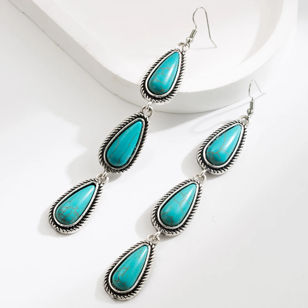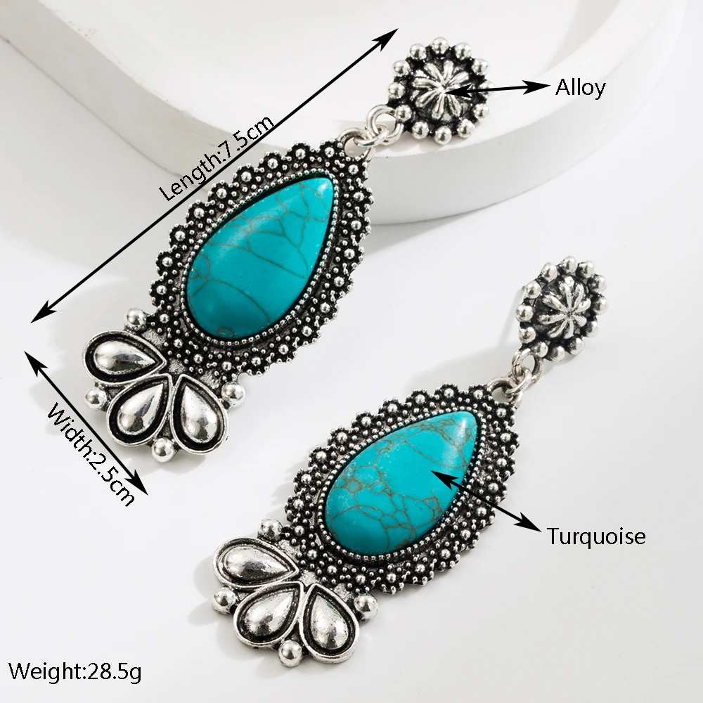 Native american Amazon Hot Selling Vacation Style with Turquoise Water Drop Earrings,