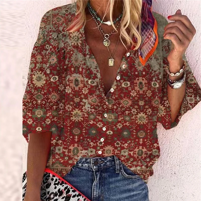 Hippie Women Elegant Casual Vintage Printing Shirt