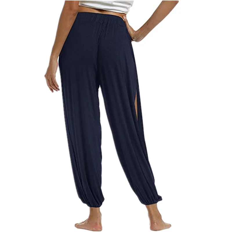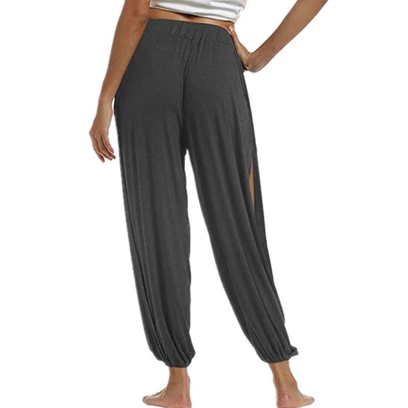 Summer High Slit Haren Pants for Women Sports Yoga Pants Solid Loose Hippie Harem Wide Leg Pants Trousers